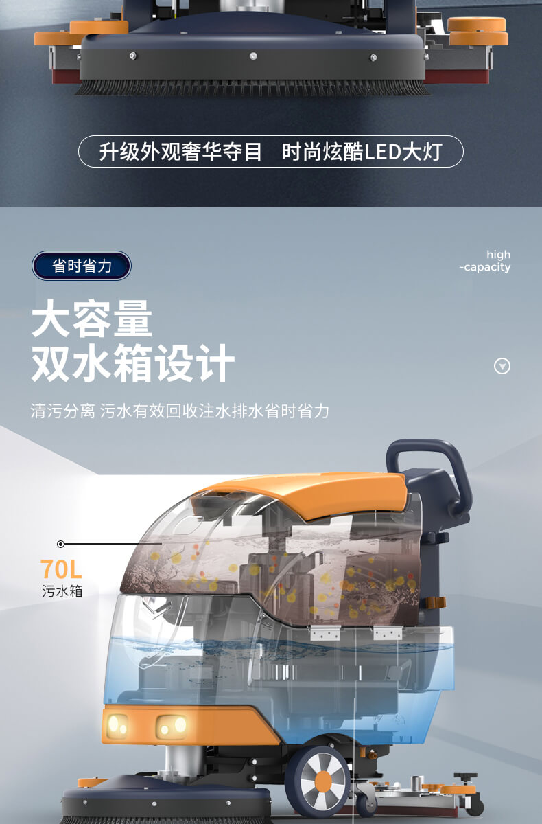 用途:手推式洗地機,是醫院、學校、商場、超市、工廠等場所的選擇。擦洗、吸干一次完成,使用靈活輕便,簡易操作易上手,提升工作效率和清潔質量。