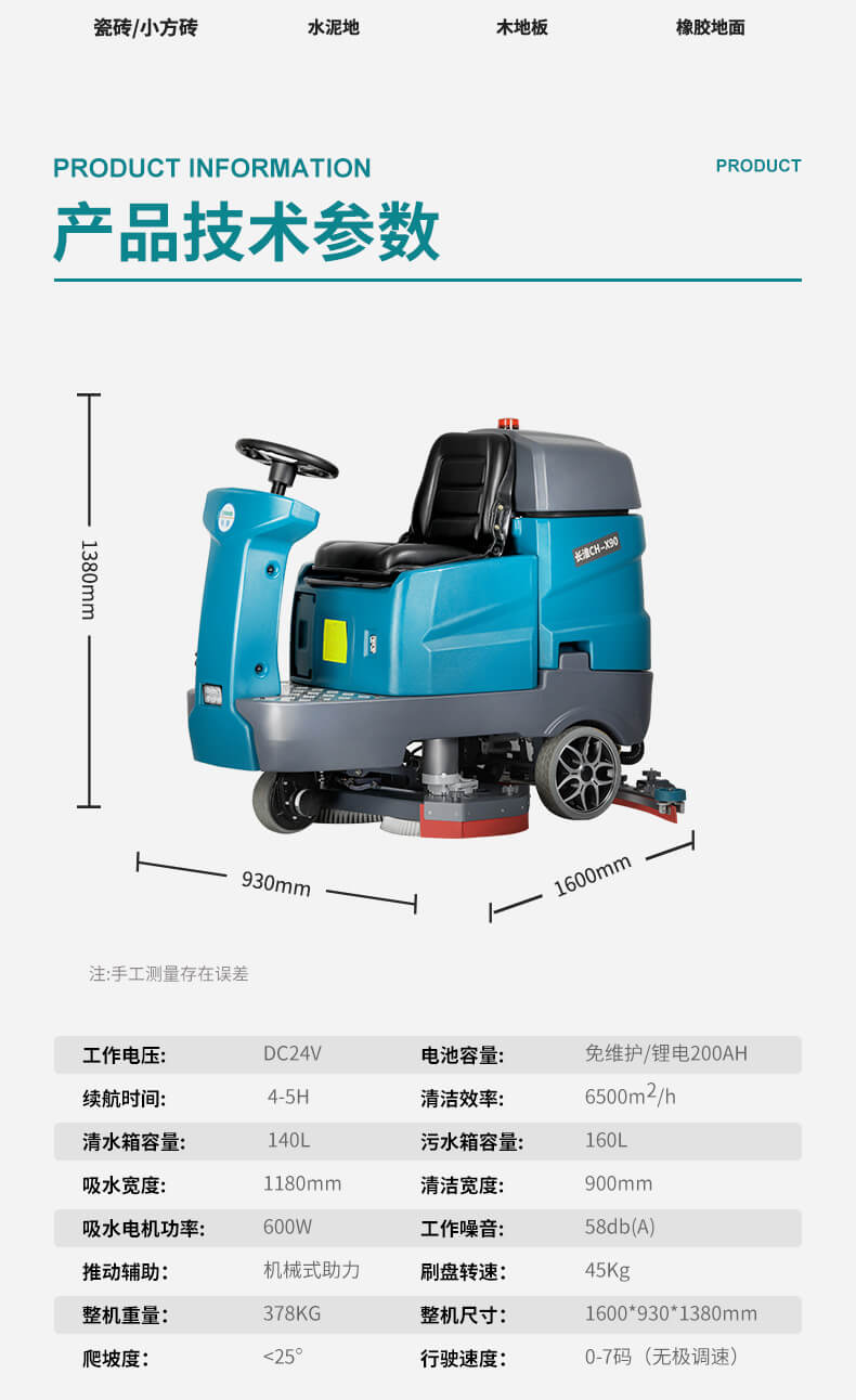 用途:大型雙刷駕駛式洗地機,專為大面積場所的適配機型。每小時可清洗6500平方米,洗擦、吸干一次完成。按鍵式操作,簡單易上手。