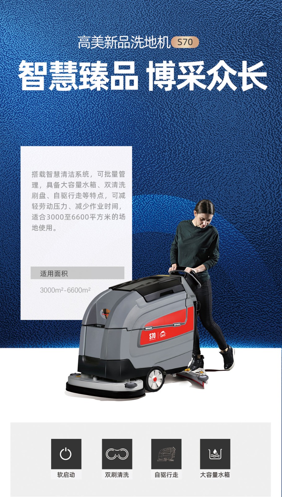 S70BT高美智慧型洗地機(jī)|手推式雙刷洗地機(jī)